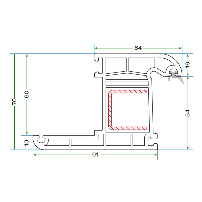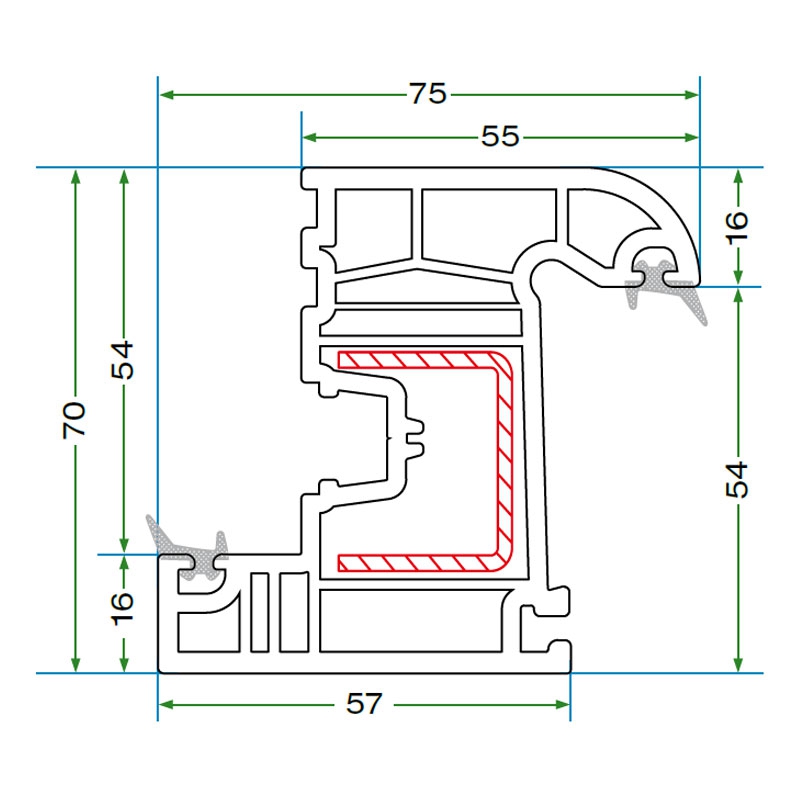 A single type of steel reinforcement is used in the frame, sash, and mullion, streamlining production and enhancing structural integrity.